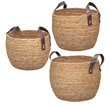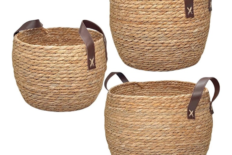 These woven seagrass baskets bring warm, natural texture to any neutral living room. They’re perfect for storing blankets, pillows, toys, or even extra throws while still looking clean and styled. The handwoven design and faux-leather handles make them both functional and aesthetic, giving your space that cozy, curated feel.