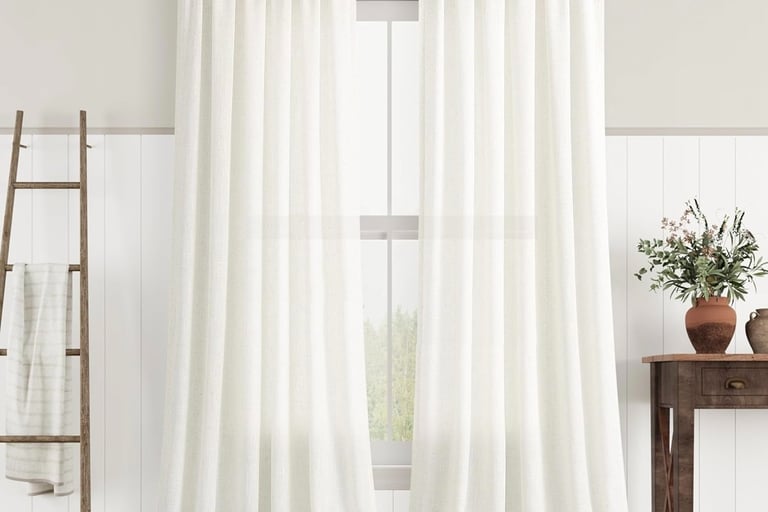 Ceiling-height curtains are one of the easiest ways to make any room feel taller, brighter, and more expensive. These Natural Linen Curtains give your space an airy, organic look with soft texture and beautiful drape. The 108” length provides that designer “floor-to-ceiling” effect that instantly elevates the room and makes it feel warm, calm, and intentionally styled.