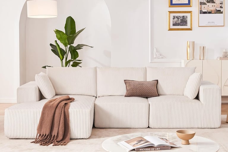 ✨ 5. Amsleekey 111.5” U-Shaped Corduroy Cloud Sectional with Ottomans